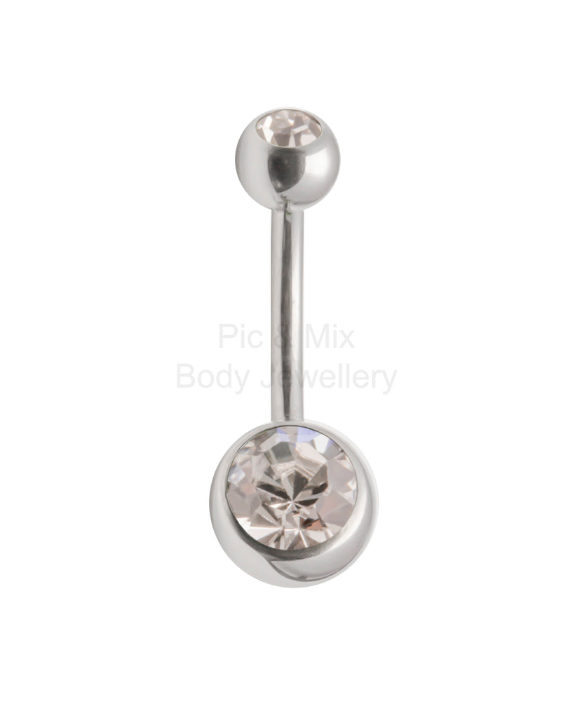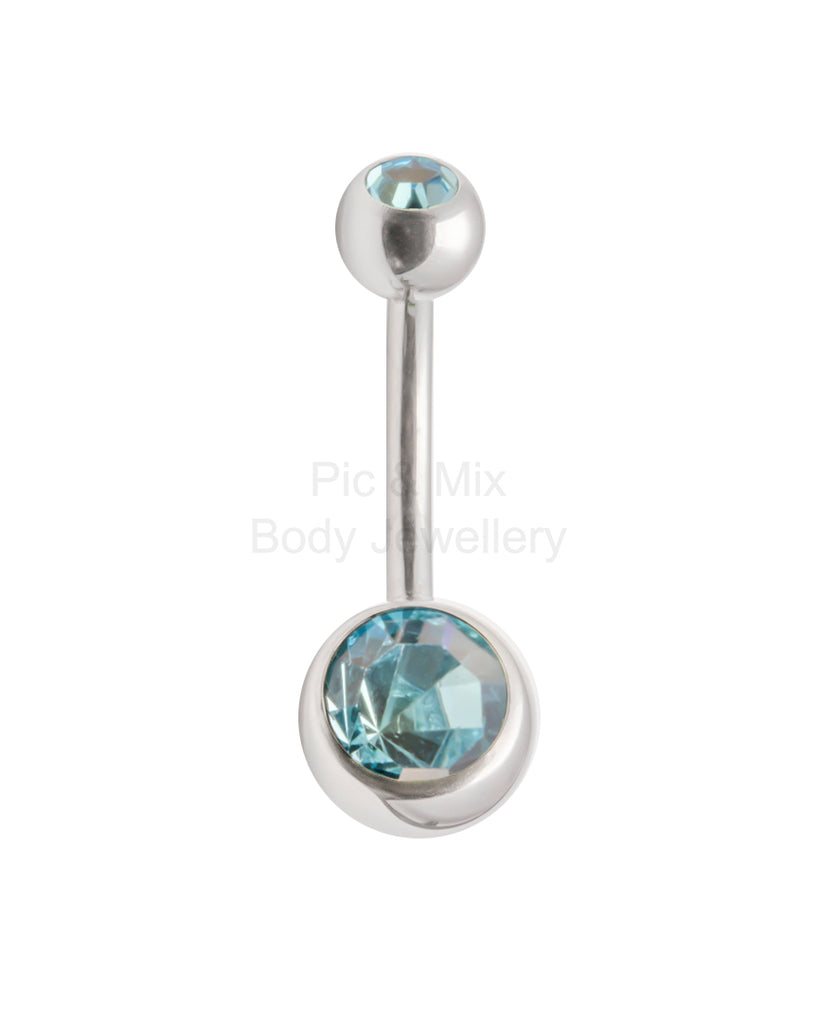 316L surgical steel double gem externally threaded Double gem belly bar.